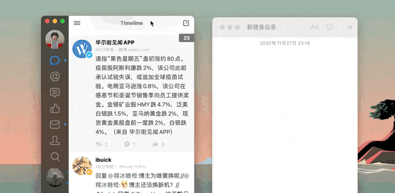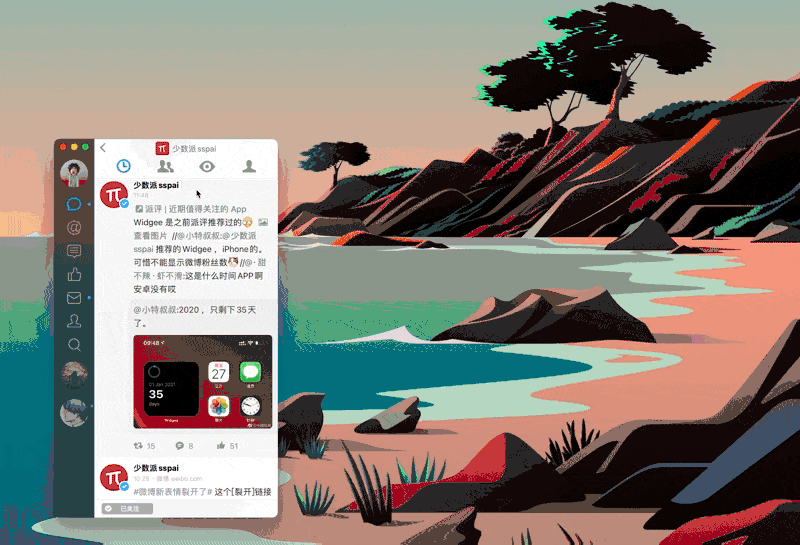 紧跟着macOS Big Sur正式版,Maipo 4.0 版本也在第一时间上线了。全新的圆角矩形图标、热门微博小组件,能够在 Apple Silicon Mac 上原生运行,这种适配速度已经把很多大厂甩在身后。