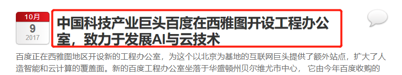 不仅美国的 IT 公司在西雅图设有办公室/分公司,国内诸如百度阿里也都在西雅图设有据点。