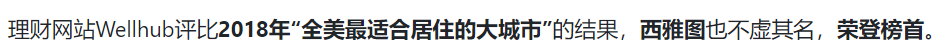 “2018全美最宜居城市排名”已出炉,从工作机会、生活、气候以及房价等方面考虑,西雅图夺冠!