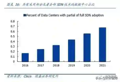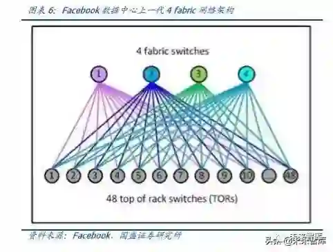 (3)当前主流云厂商数据中心均已采用叶脊架构,或基于叶脊架构进行开发升级。我们认为未来随着云将成为大趋势,数据中心内部的东西向流量将占到整个数据中心流量的大头,内部流量的爆发将带动数据中心采用叶脊架构,器件向更高密度进行升级。