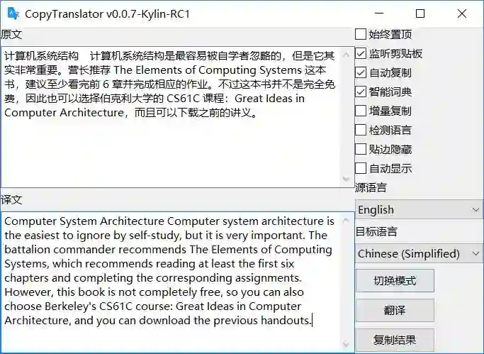 近日,营长发现一款体验“十分优秀”的复制即翻译的外文辅助阅读翻译解决方案——CopyTranslator,它很好地解决了PDF文本换行的麻烦,并借助谷歌翻译API支持,在速度和质量上都有了很好的满足。堪称人类智慧的结晶!为不失公允,特与另款获得不少点赞的 Windows 翻译软件 Qtranslate 进行对比。