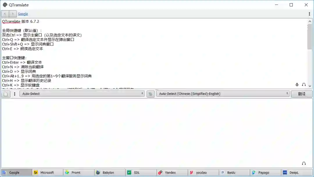 由于 QTranslate 在线翻译需要 Internet 连接,在不同在线翻译引擎切换时,估计需要至少 10 秒以上的等待。