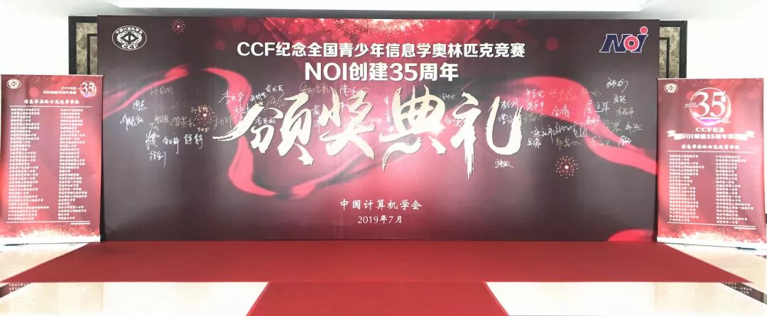 由中国计算机学会(CCF)主办的全国青少年信息学奥林匹克竞赛(简称NOI)创建于1984年。2019年,CCF NOI迎来创建35周年。值此,CCF表彰了一批在NOI领域取得优异成绩、做出突出贡献的单位和个人。CCF NOI颁奖典礼于7月15日在NOI2019开幕式上盛大举行。