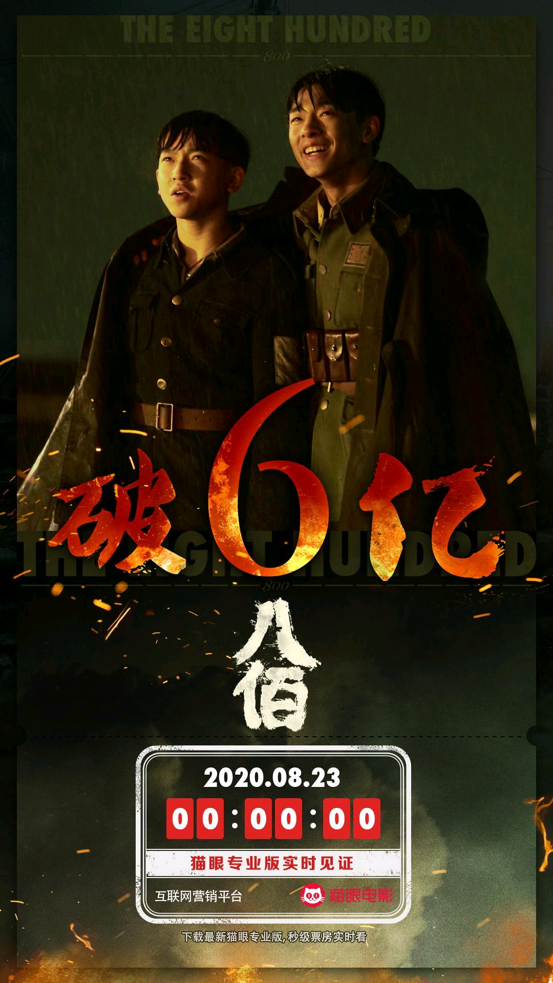 8月14日晚,《八佰》开启点映。到20日,《八佰》的点映票房已经突破2亿,创下了中国电影市场点映票房最高纪录。