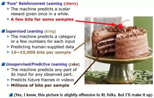 少标签。我们遇到的“题目”很多,我们无时无刻不在接受信息;但是我们的“答案”很少,我们可能看过各种各样的人,各种各样的动物,直到某一天才有人用3个字告诉我们,“这是猫”。可能一生中,别人给你指出这是猫的次数,都是屈指可数的。但是,仅仅通过这一两次提示(相当于一两个标签),你就能在一生中记得这些概念。甚至别人从不告诉这是猫,你也知道这应该不是狗或者其他动物。这种“没有答案”的学习称为 “无监督学习”(Yann LeCun将其比作蛋糕胚,以示其基础性的作用),目前机器学习在无监督学习方面进展很少。