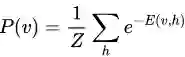 即v是关于自由能的玻尔兹曼分布。也就是我们找的参数是使得出现的样本的自由能(在参数约束的分布中)最低的一组参数。这样参数选择就和样本分布通过最低能量联系起来。