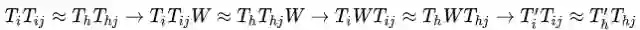 但是选择哪类函数呢?Hinton的答案是多重线性函数(矩阵),因为这能够使得它们的关系不受视角变换(设视角变换为矩阵W)影响,这是因为