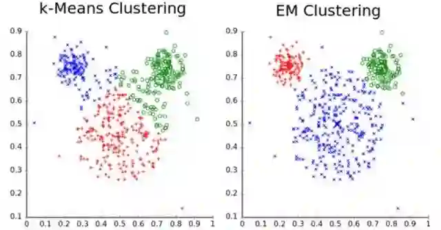 图为两个不同的聚类算法的效果,取自Wikipedia k-Means页面
