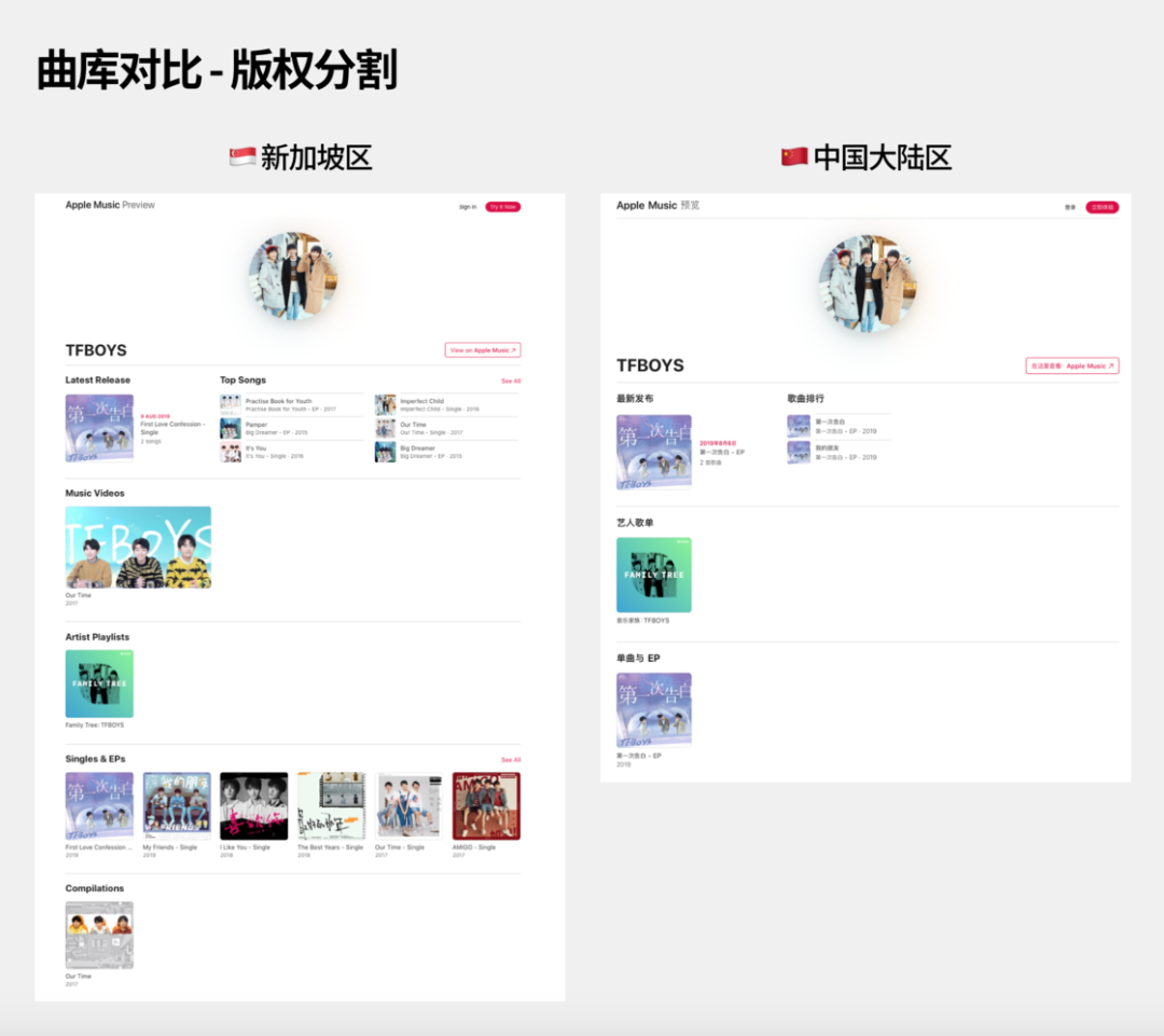 日区:曲库丰富,功能齐全,英文和日语界面兼顾,没有中文支持,本土特色十足,Apple 媒体服务基本齐全,充值卡购买难度中等,适合钟情日语歌曲和欧美歌曲、偏爱多个 Apple 媒体服务、不介意日文/钟情于日本文化的你。