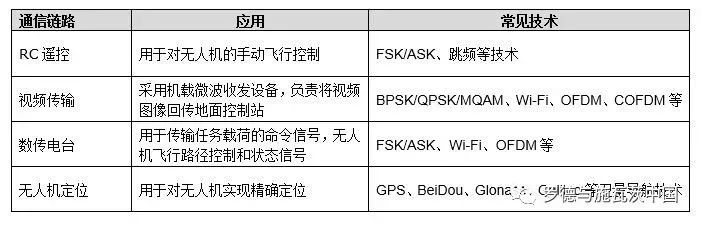 因无人机数据链的重要性,许多研究单位都选择一些体积小、质量轻、技术成熟的通信模块作为无人机的数据链,从而保证数据传输的可靠性。各通信链路采用的技术、应用和常见技术如表1所示。