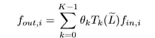 laibda_max为L的最大特征值,因此可以将卷积计算表示为F_out=g_θ*F_in 。对于一个文本,第i个图特征输入f_{in,i}∈F_in 指的是顶点vi 的词频,第i个特征的输出 f_{out,i}∈F_out表示为: