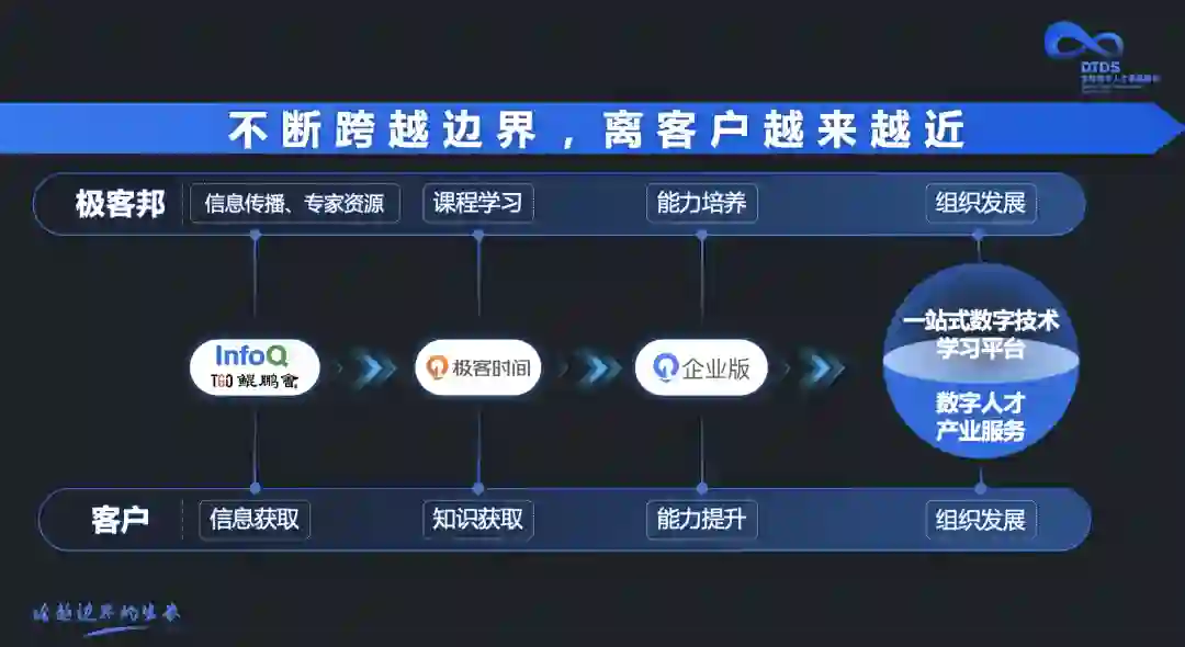 极客邦希望能够对接更多的社会资源,承担更多的社会义务,帮助企业、社会建设数字经济、数字社会,共同实现数字中国。我们希望能够不断跨越边界,离客户越来越近,客户的需求是我们最终的动力。