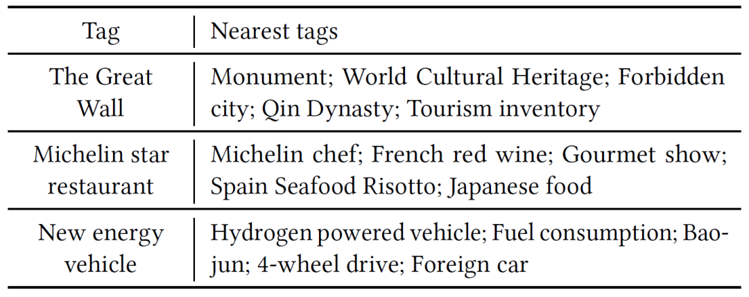 例如,视频session能够将在用户观看序列上相似视频(以及视频相关的标签、媒体号、用户等)联系到一起,反映了用户在视频观看序列上的偏好;媒体能够将一个媒体发布的视频联系到一起,反映了用户在视频来源上的偏好;用户也能将相似视频联系到一起,反映了同一类用户群体爱看的视频内容。通过邻居相似度的loss和异质图上的多步路径,在不同用户兴趣维度上相似的视频和标签,会被学习到拥有相似的向量。