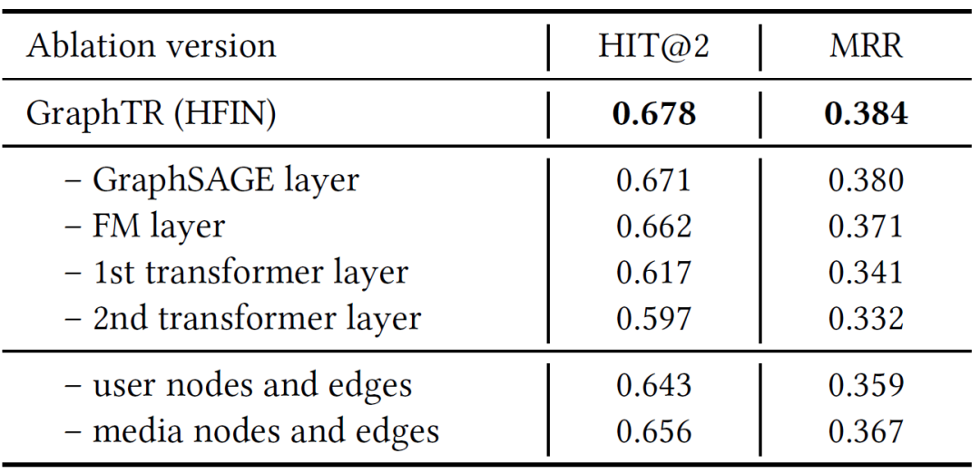 (2)网络表示学习模块,使用一个新的HFIN图神经网络模型,融合特征域维度的Transformer,GraphSAGE和FM特征抽取器得到节点表示。我们使用了一个基于邻居相似度的loss,将用户的多样偏好学到节点表示中。