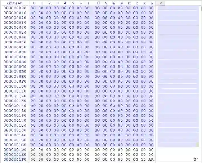 经过上述修改后,系统重启时并没有顺利启动我们的payload,这里需要回顾第一章节里提到的MBR区的数据格式,在MBR所在的第一扇区除了前446字节是MBR程序外,后面的64个字节属于DPT(Disk Partition Table硬盘分区表),最后两个字节“55,AA”是分区的结束标志。所以我们在写入payload的同时应该修复DPT和结束标志,程序中需要在读取原始MBR数据后加入以下代码。