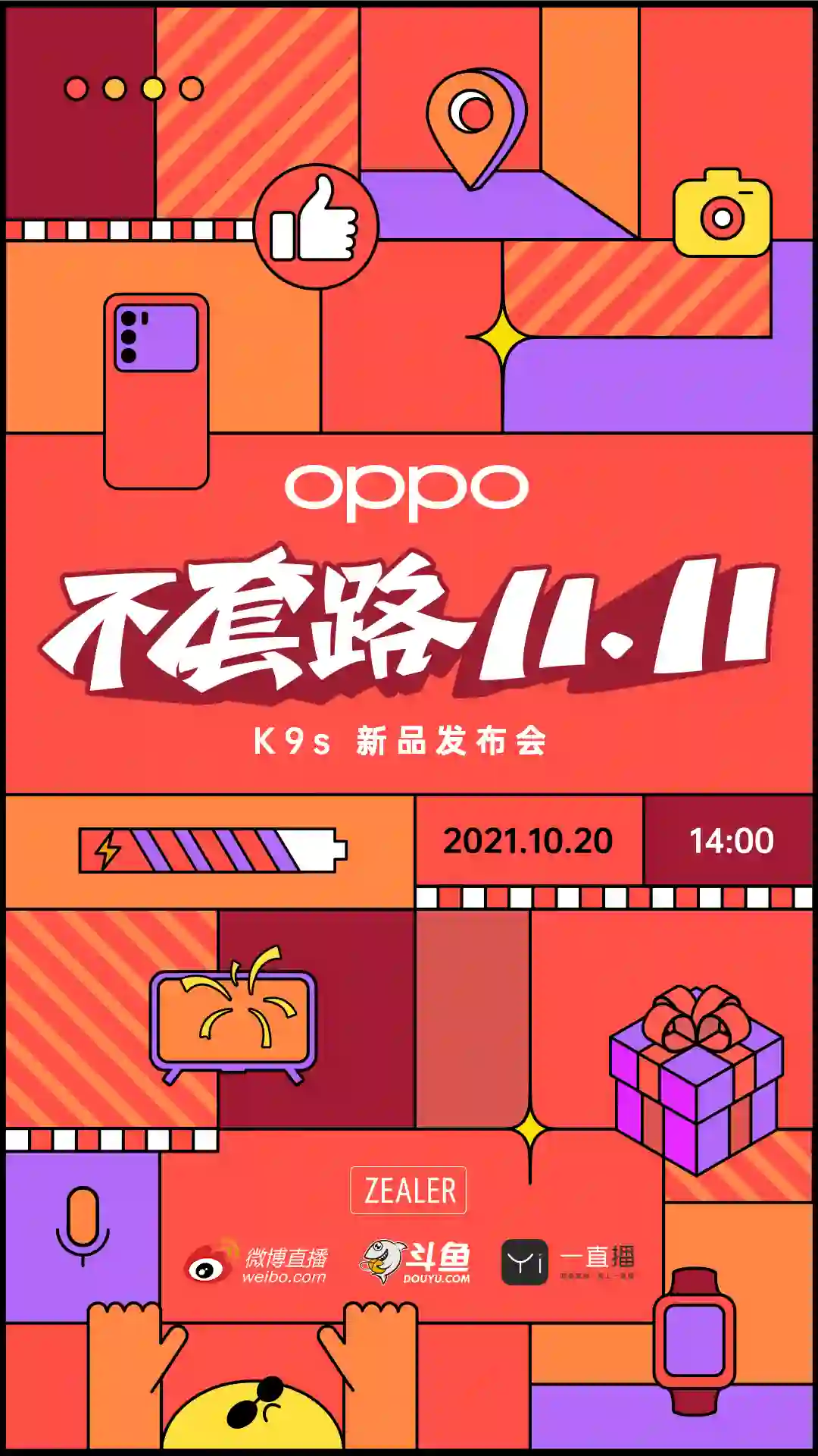 OPPO 不套路双 11 发布会,10 月 20 日下午 2 点,ZEALER 为你同步直播。除了有全新 K 系列硬核新品 K9s 重磅登场外,还有一堆不套路福利优惠等你来。