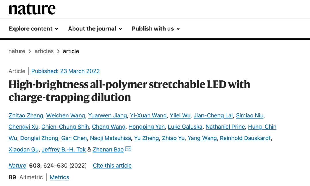 Nature:鲍哲南团队研发新型可穿戴显示器,电子皮肤时代加速到来