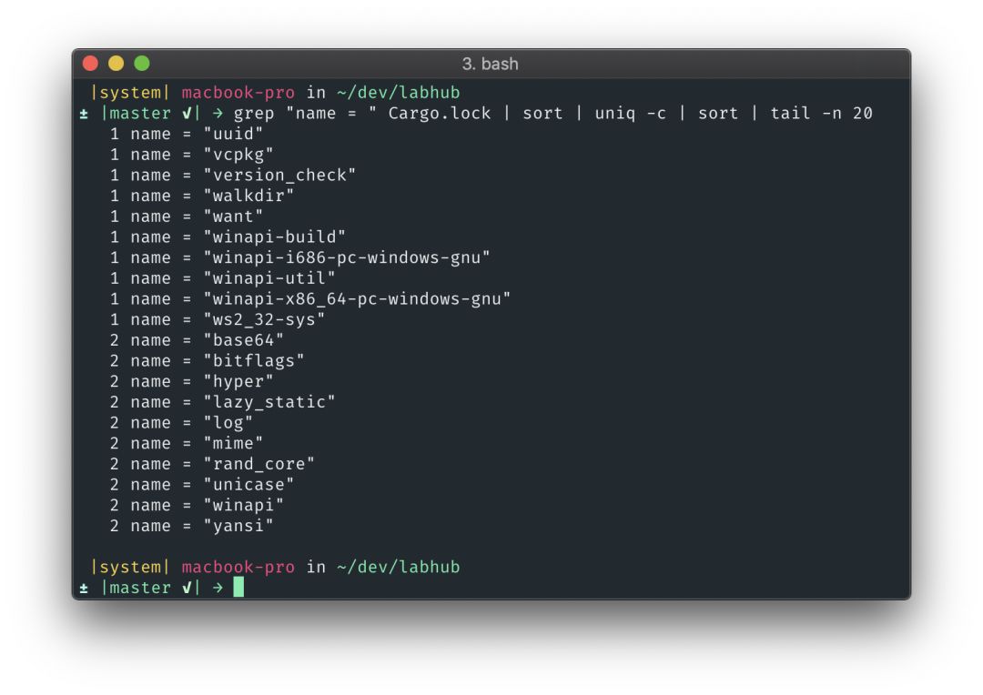 我注意到,除了一个相对简单的应用程序的依赖项列表外,我还多次编译相同库的不同版本。我认为Cargo为了保持向后兼容性试正图变得聪明;它正在根据语义版本来猜测应该包含哪些库。令我担心的是,当你拥有一个依赖于某个其他库的古老的、破损的版本的库,同时这个库还有漏洞,这时会发生什么。我毫不怀疑Rust的作者已经考虑过这些问题了,但它仍然看起来很奇怪。公平地说,处理依赖项间的依赖关系是一个非常棘手的问题。值得庆幸的是,有一个Cargo的树工具可以帮助对这些东西进行排序,然后你可以强制一个依赖来升级它的依赖项。