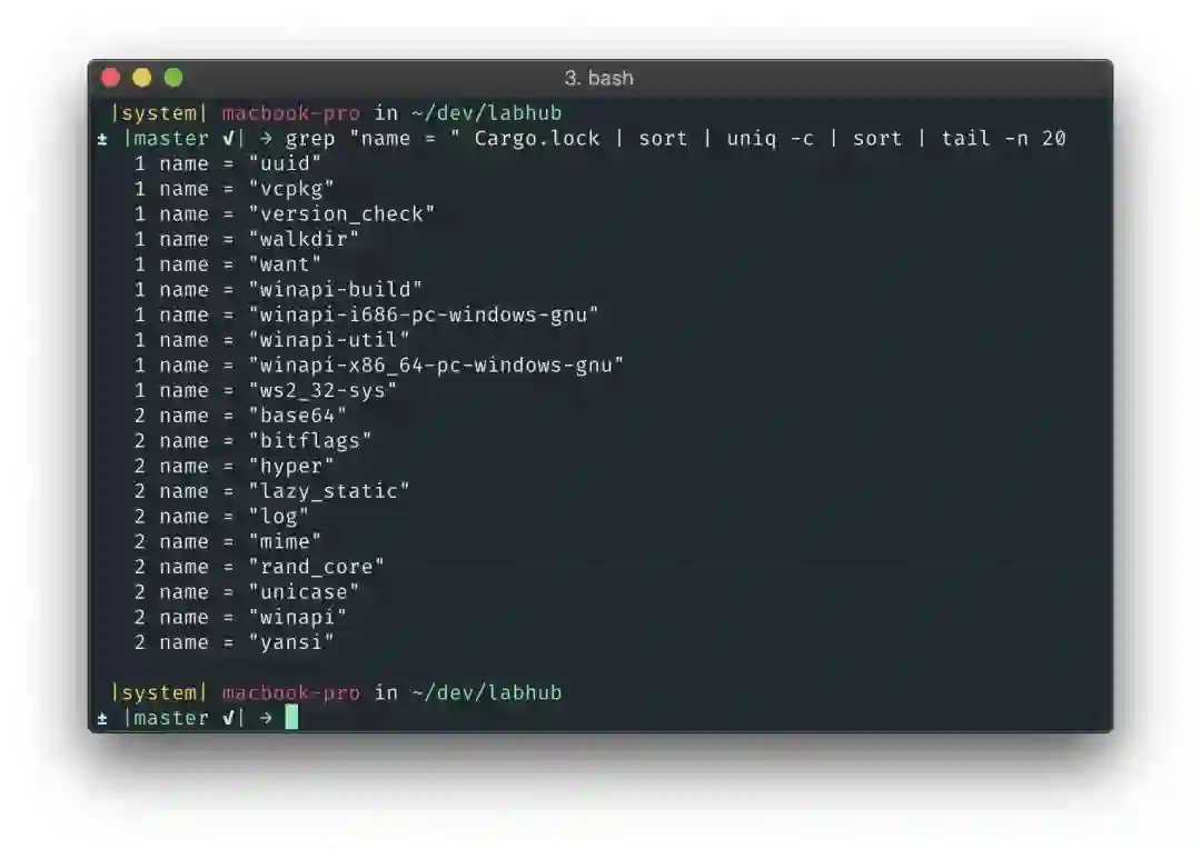 虽然没有Node.js生态系统那么糟糕,但每个库的依赖关系列表已经变得很长。我写了一个名为LabHub的小型GitHub机器人,我仍然对有多少依赖项感到惊讶(如果你想知道的话,可以有181个)。对我来说,这表明碎片和重复,这可以通过将一些广泛需要的功能慢慢地