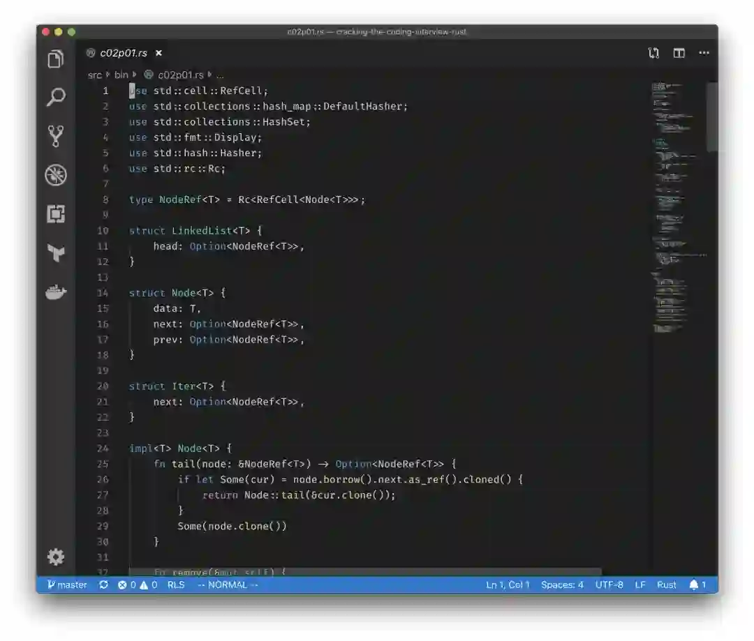 近日,我在Rust中编写了一些小程序,并且在阅读了一半的“Programming Rust”书籍之后发现,我是真的不了解Rust。基于此,我想出一个很好的方法来了解这门语言,那就是尝试去解决“Cracking the Coding Interview”一书中的所有189个问题。我不仅会用Rust解决它们,而且还决定在Twitch上直播。对于提供技术讲座,或者在观众面前编码,我并不陌生,但尝试学习一种编程语言,并解释我所做的——让全世界都看到——对我来说是一种新鲜的东西。