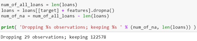 斯蒂文担心 csv 文件会有缺失数据,如果存在,它们会由 pandas 转成 NA 形式,因此他用 dropna() 函数来删除 NA 值。之后斯蒂文又怕有太多 NA 值,那么直接删除大量的数据显示不是一个好的处理方案,因此他检查了删除含 NA 的数据的个数只有 29 个,而剩余的数据个数为 122,578 个。谢天谢地,直接删除它们对最后结果没有什么影响。