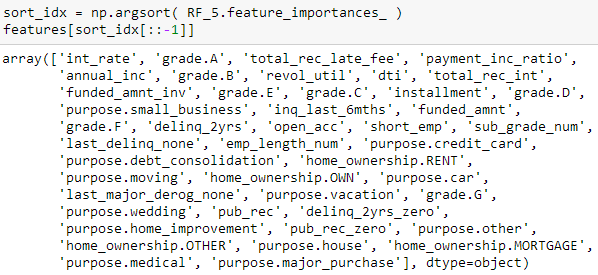 最后反向打印出特征,发现 int_rate, grade.A, total_rec_late_fee是三个最重要的特征