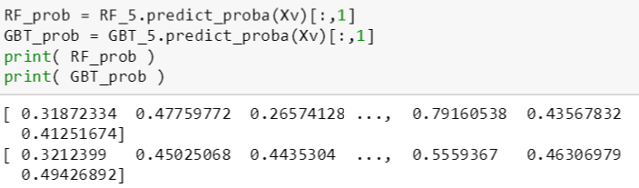 之后将 RF_prob, GBT_prob 和验证数据 vali 合并成一个新的数据表,并用 argsort() 找到排序对应的索引 RF_sort_idx 和 GBT_sort_idx。