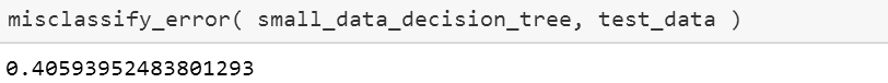 用上贴写好的 misclassify_error 函数计算出这棵非权重树的测试误差为 0.4059。