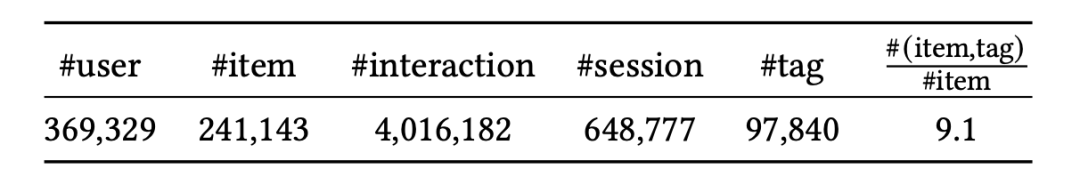 论文的数据集是在快手推荐页场景内通过采样部分活跃用户,按照 session 维度进行聚合后获得的样本。最终数据集的统计数据如下: