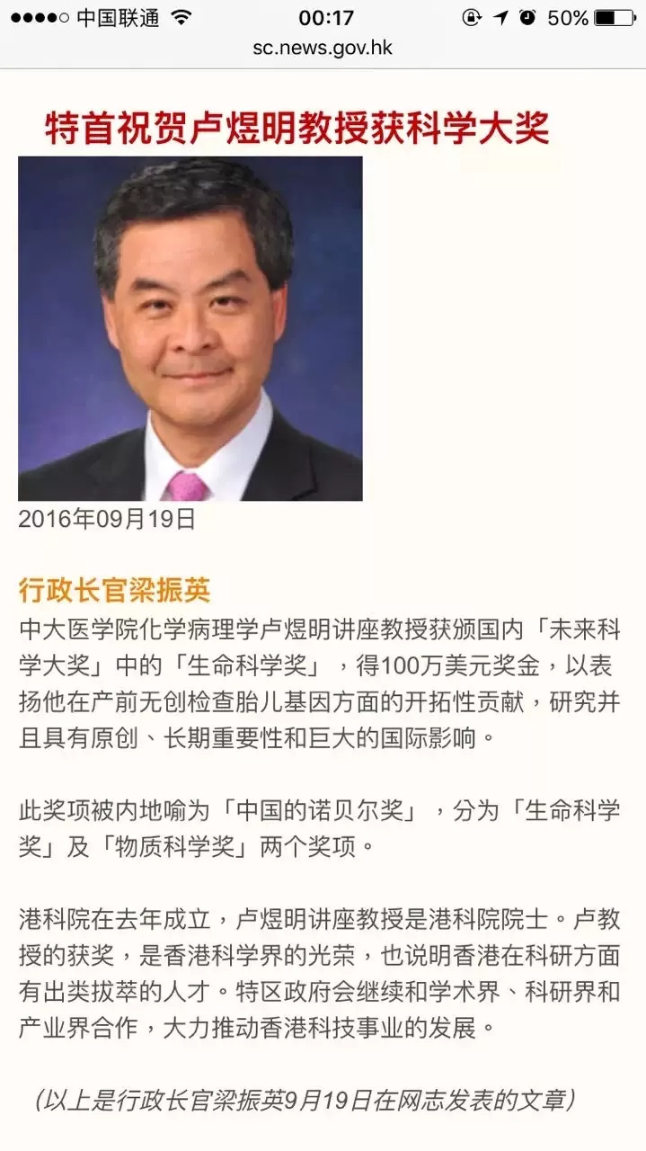 消息一出,数十家媒体报道,甚至连香港特区行政长官梁振英都在个人网页上表示了关注。