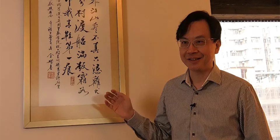卢煜明家中挂着杨万里的诗《庚子正月五日晓过大皋渡》,图片来自凤凰卫视