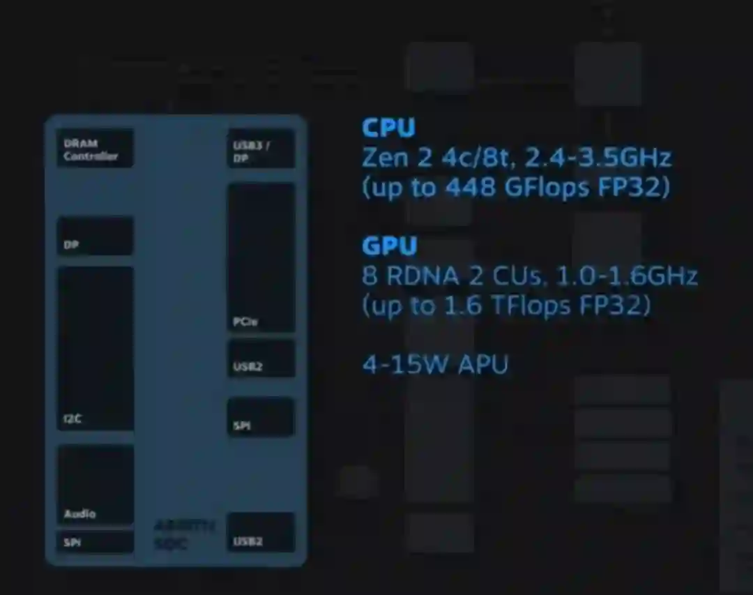 在本周的开发者直播活动中,Steam Deck官方介绍了其配置详情。掌机Steam Deck搭载的是一颗V社向AMD定制的SoC芯片,代号Aerith,实际对应AMD Van Gogh(梵高)家族的APU处理器,7nm工艺,功耗4~15W。CPU部分基于Zen 2架构,4核8线程,2.4~3.5GHz。GPU方面采取RDNA2架构,频率1~1.6GHz,1GB显存,支持FSR、DX12等。