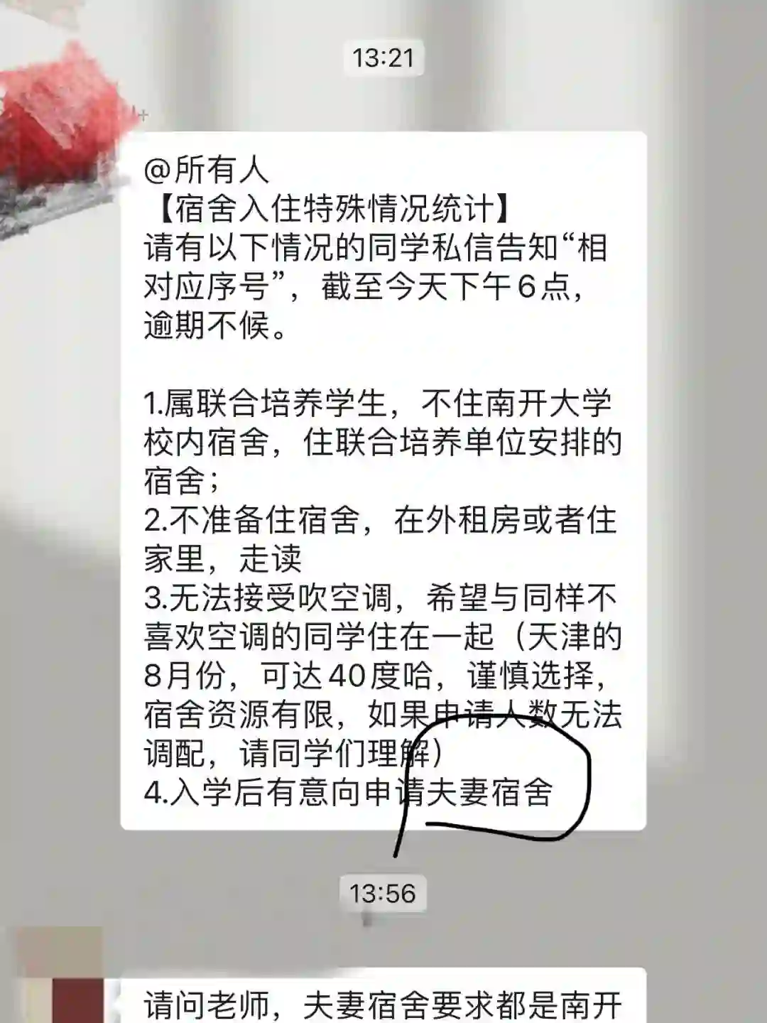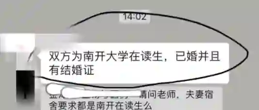 ,校方表示,大家读了研,尤其是开始读博,一般岁数也到了谈婚论嫁的时候了,因此,有时候会产生一些校内夫妻。考虑到这些已婚在校学生需求,学校决定推出“夫妻宿舍”,可以让学生夫妻住在一起方便沟通感情。不过,申请人夫妻必须都是南开大学在籍在校生,申请时需要结婚证和身份证。