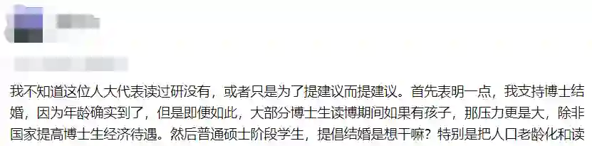 还有一种更理性的观点表示,自己是很支持博士结婚的,因为读博的时候年纪确实也到了该成家的时候,