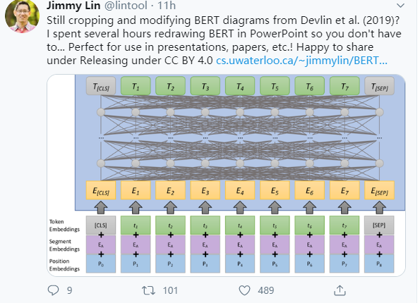 来自滑铁卢大学Jimmy Lin教授用PowerPoint绘制的BERT架构图,可方便用于论文和Slides,以CC BY 4.0共享发布