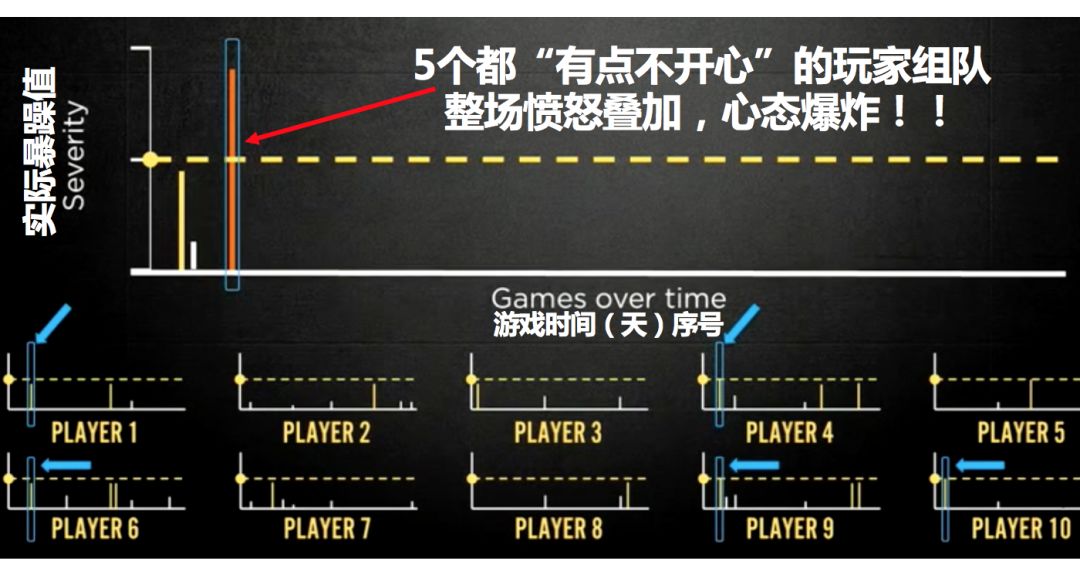 看来一局游戏里出现大规模喷人情况的根本原因是……不开心的玩家都聚集在了一起,大家已有的小愤怒互相刺激叠加,最终形成了巨大的愤怒。