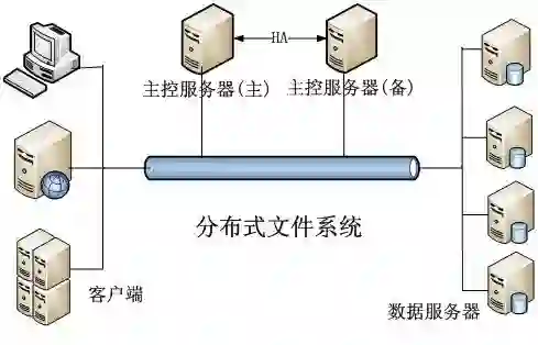 目前比较主流的分布式文件系统架构,如下图所示,通常包括主控服务器(或称元数据服务器、名字服务器等,通常会配置备用主控服务器以便在故障时接管服务,也可以两个都为主的模式),多个数据服务器(或称存储服务器,存储节点等),以及多个客户端,客户端可以是各种应用服务器,也可以是终端用户。