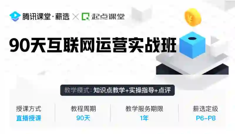 所以在此推荐腾讯课堂和起点课堂联合办学,专为运营人打造的《90天互联网运营实战班》直播课程 。