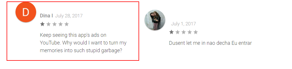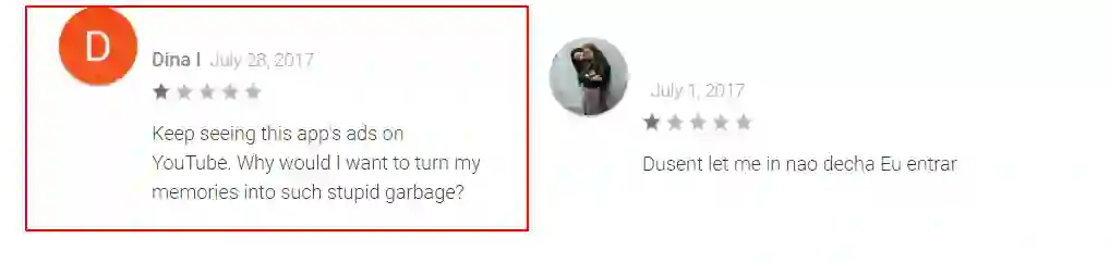 在俄罗斯Google Play上,快手的评价中:有人这么评论,Keep seeing this app's ads on YouTube. Why would I want to turn my memories into such stupid garbage?(总在YouTube上看到这个应用的广告。我为什么要把自己的记忆变成这样愚蠢的垃圾?)看来,快手并非像它自己说的那样,业绩不好不是没有推广,而是推广之后用户并不买单。