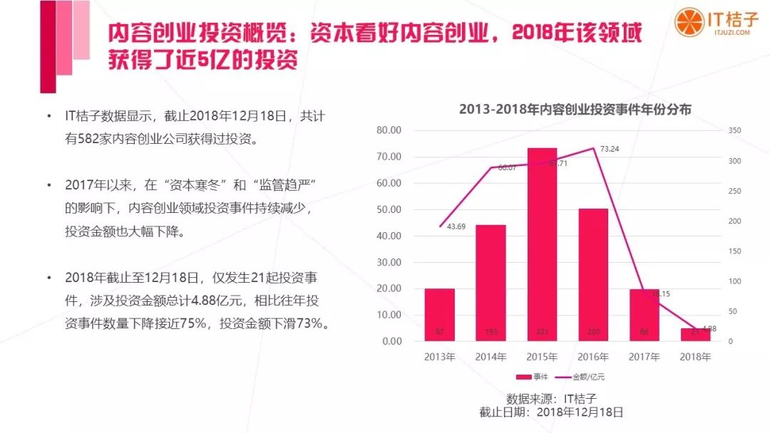 以下是 IT桔子出品的《2018 中国内容创业发展分析报告》全文: