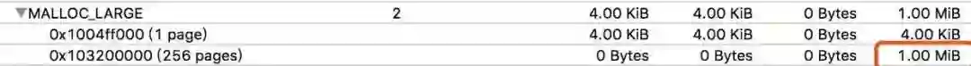 现在Resident Size,Dirty Size也是1M了,说明这块内存已经被映射到物理内存中去了。为了解决这个问题,苹果官方推荐使用calloc代替malloc,calloc返回的内存区域会自动清零,而且只有使用时才会关联到物理内存并清零。