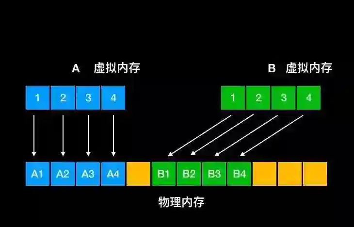 什么是VM Regions呢?要知道这个首先要了解什么是虚拟内存。当我们向系统申请内存时,系统并不会给你返回物理内存的地址,而是给你一个虚拟内存地址。每个进程都拥有相同大小的虚拟地址空间,对于32位的进程,可以拥有4GB的虚拟内存,64位进程则更多,可达18EB。只有我们开始使用申请到的虚拟内存时,系统才会将虚拟地址映射到物理地址上,从而让程序使用真实的物理内存。下面是一个示意图,我简化了概念。