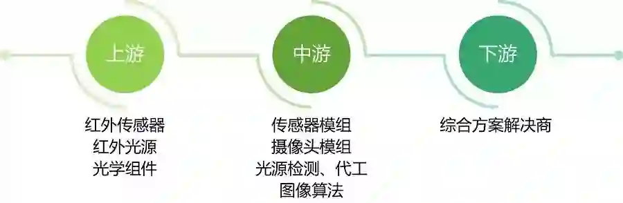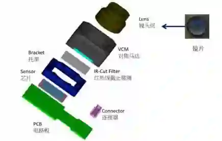 从产业链来看,相比较传统的摄像头,比较突出的就是红外相关的元件。其实,如果对比两者的结构,也能很明显发现深度摄像头增加了不少新的硬件组件。