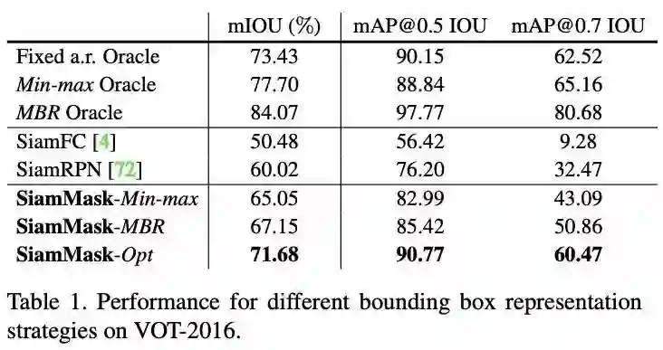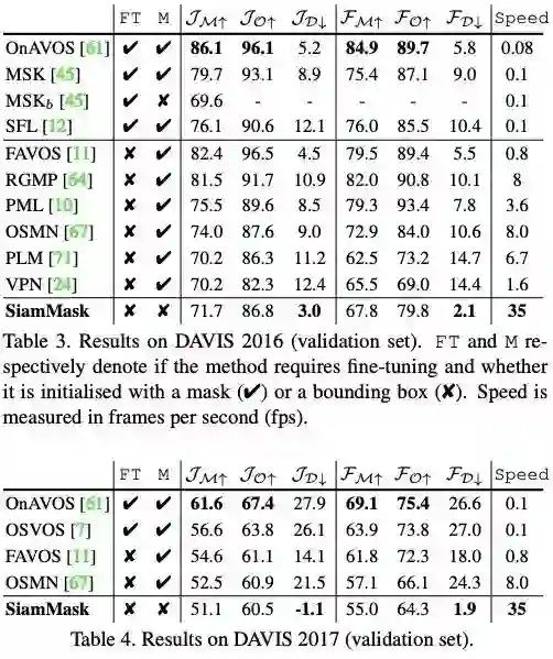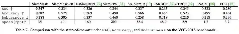 SiamMask 相比之前的跟踪算法的 state-of-the-art 精度又改进不少。