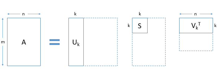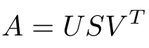 • SVD将一个矩阵分解为三个矩阵。假设我们利用SVD分解矩阵A,我们会得到矩阵U,矩阵S和矩阵VT(矩阵V的转置)