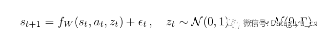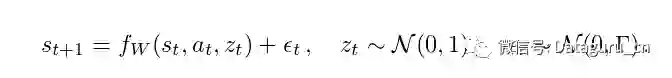 在这个模型下,输入噪声变量z_t可以通过f_W以复杂的方式进行变换,以在s_t + 1中产生任意的随机模式来作为s_t和a_t的函数。