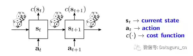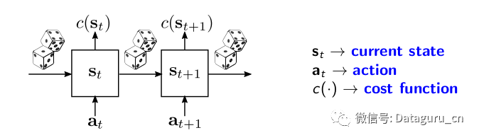 这些系统的抽象图如下所示。系统的当前状态被表示为s_t并且与每个状态s_t相关联,同时存在一个由函数c(•)给出的成本c(s_t)。在每个时间步中,我们应用一个操作,这将在下一个时间步s_t + 1时影响系统的状态。
