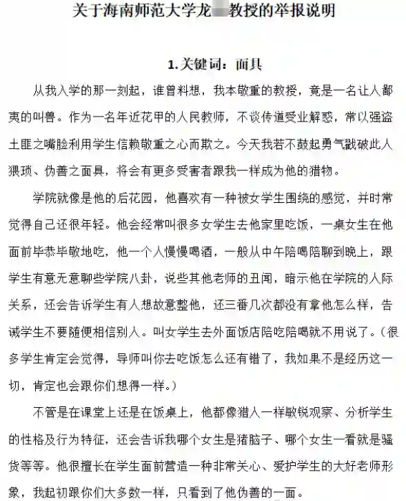 5月27日,海南师范大学才处理完学校一副教授被学生举报和多名女学生发生性关系一事。