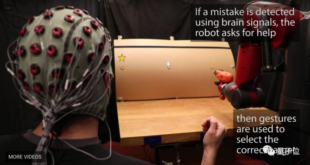 研究人员还找了一些路人来参与测试,在测试中,路人们能通过活动自己的手臂来控制机器人,控制误差大约在几英寸范围内,也就是几厘米到十几厘米的范围内。此外,还可以靠手势控制,控制准确率大概在70%左右,如果觉得不准的话,还可以带上脑电帽,靠脑波来纠正机器人的错误。