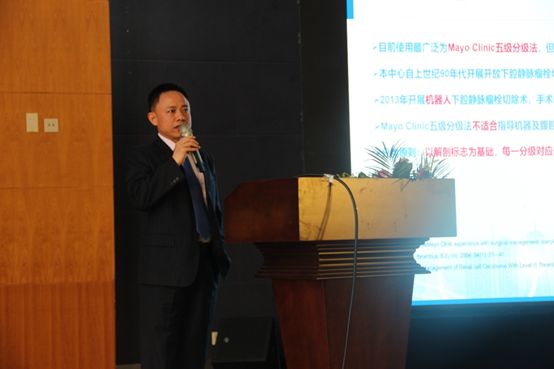 中国人民解放军总医院主任医师马鑫的报告题目是《兼顾策略和预后的下腔静脉癌301分级系统》。肾癌伴下腔静脉(IVC)瘤栓占肾癌的4%~10%,手术难度大、风险高、瘤栓脱落致死。分级系统可以指导手术策略的制定,目前使用最广泛的为Mayo Clinic五级分级法,但其仅考虑了瘤栓的高度,不适合指导机器及腹腔镜微创手术策略。在机器人及腹腔镜微创时代,下腔静脉癌栓301分级应运而生。该分级系统基于术前影像解剖学,每一分级对应一类手术策略。初步经验表明,301分级不仅能够预测手术难度、手术时间、出血量,而且与预后相关,应用该分级系统及对应的手术策略指导处理下腔静脉瘤栓安全、可行、有效,未来有待多中心进一步临床研究验证。